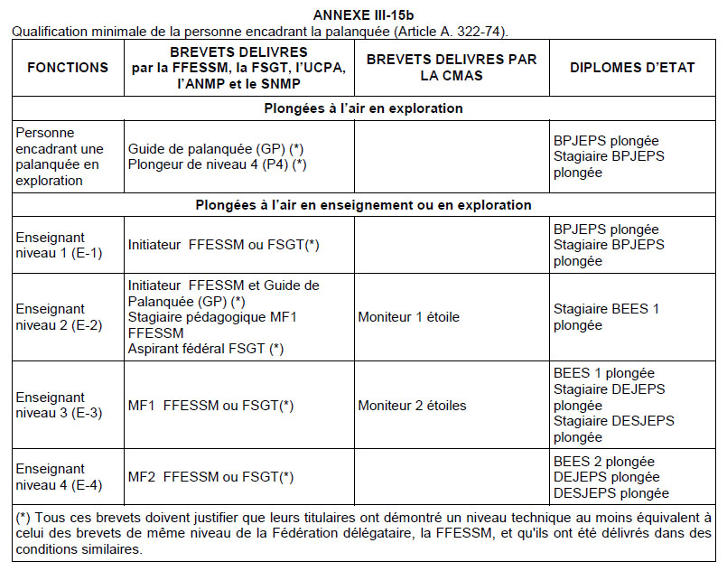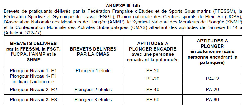 Les diplômes des plongeurs
